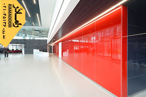 2. شیشه رنگی با ضخامت 6 میلیمتر: برای پوشش فضای بین کابینت، دیوارپوش دکوراتیو، تخته وایت برد شیشهای، رومیزی و ... استفاده میشود.